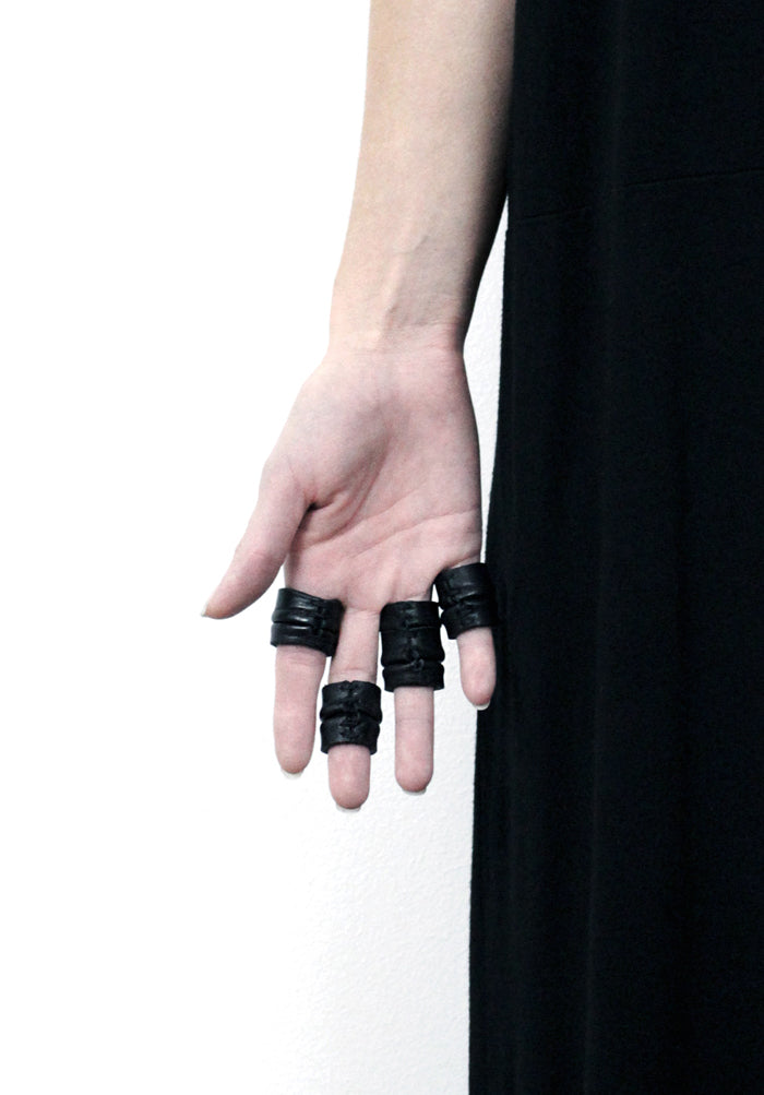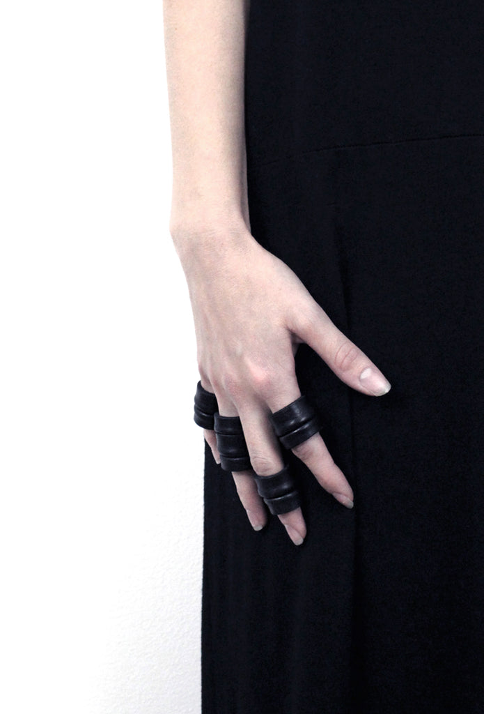 Hand stitched leather rings. Custom-made sizes.