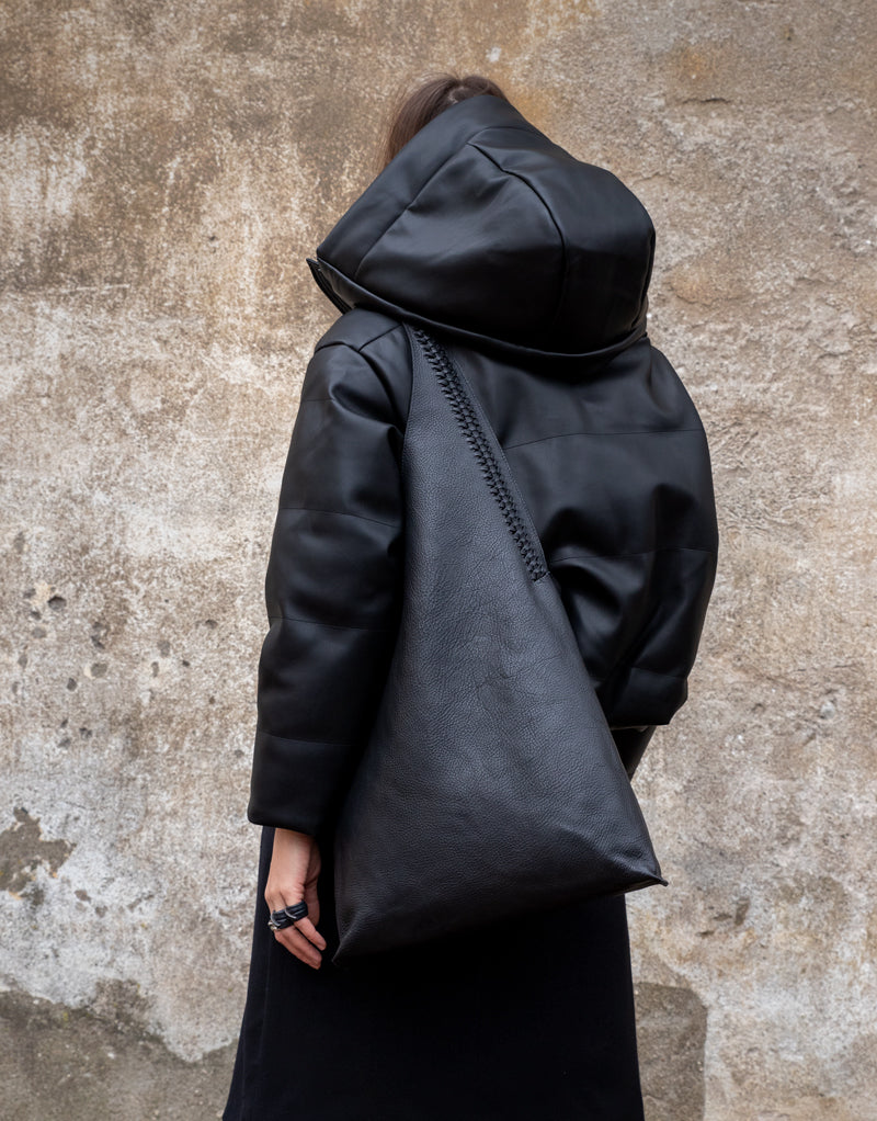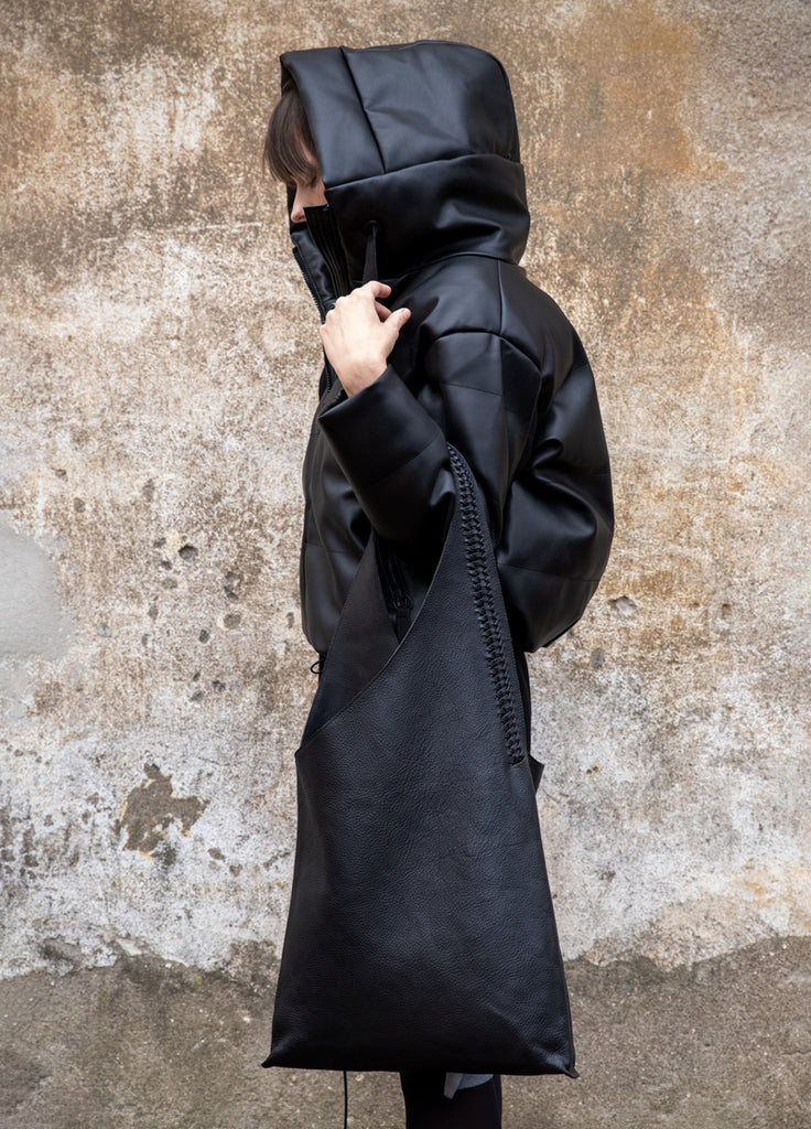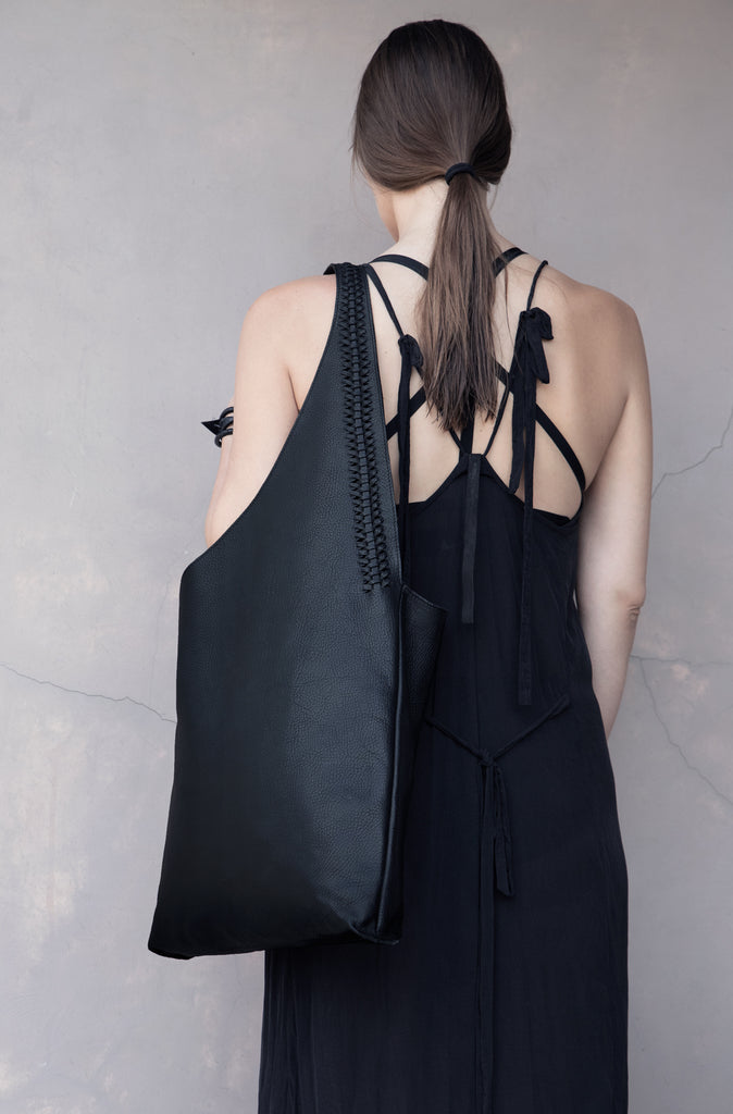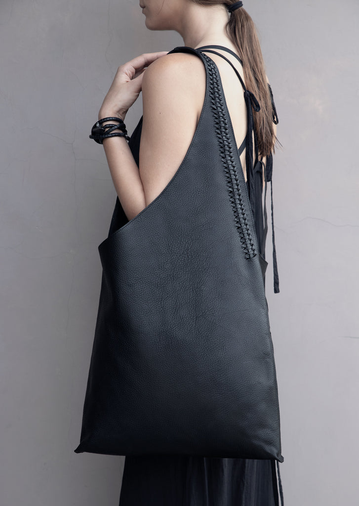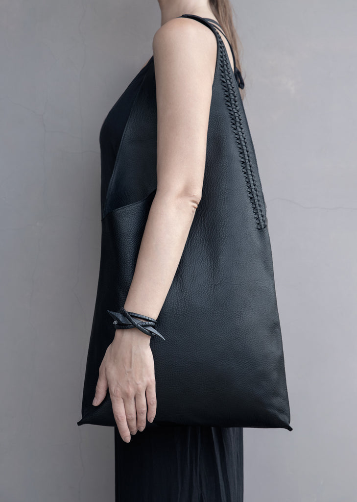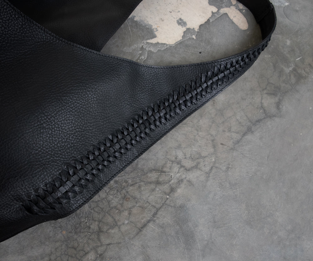 Italian Vegetable tanned leather bag with a decorative braid at front.