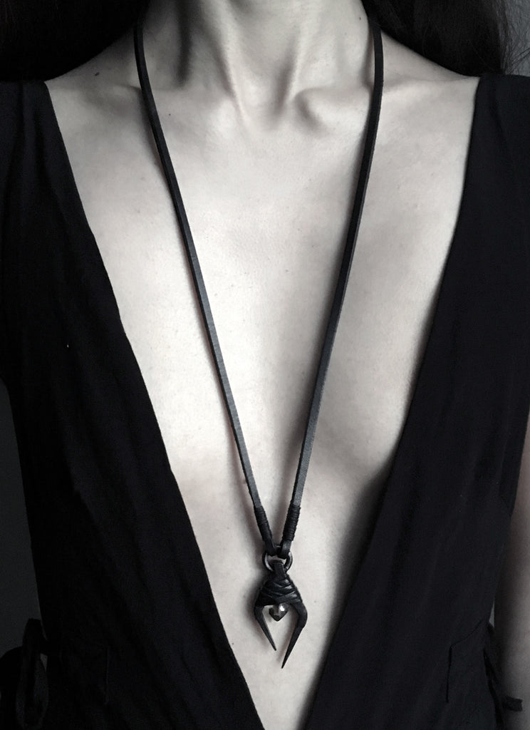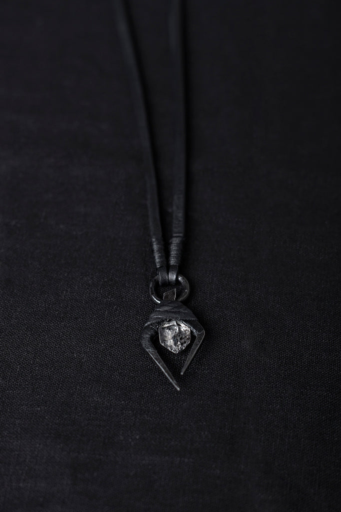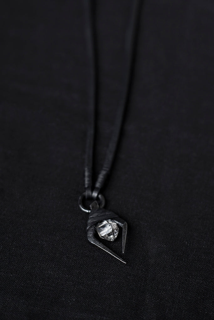 One big herkimer quartz diamond wrapped in vegetable tanned leather.